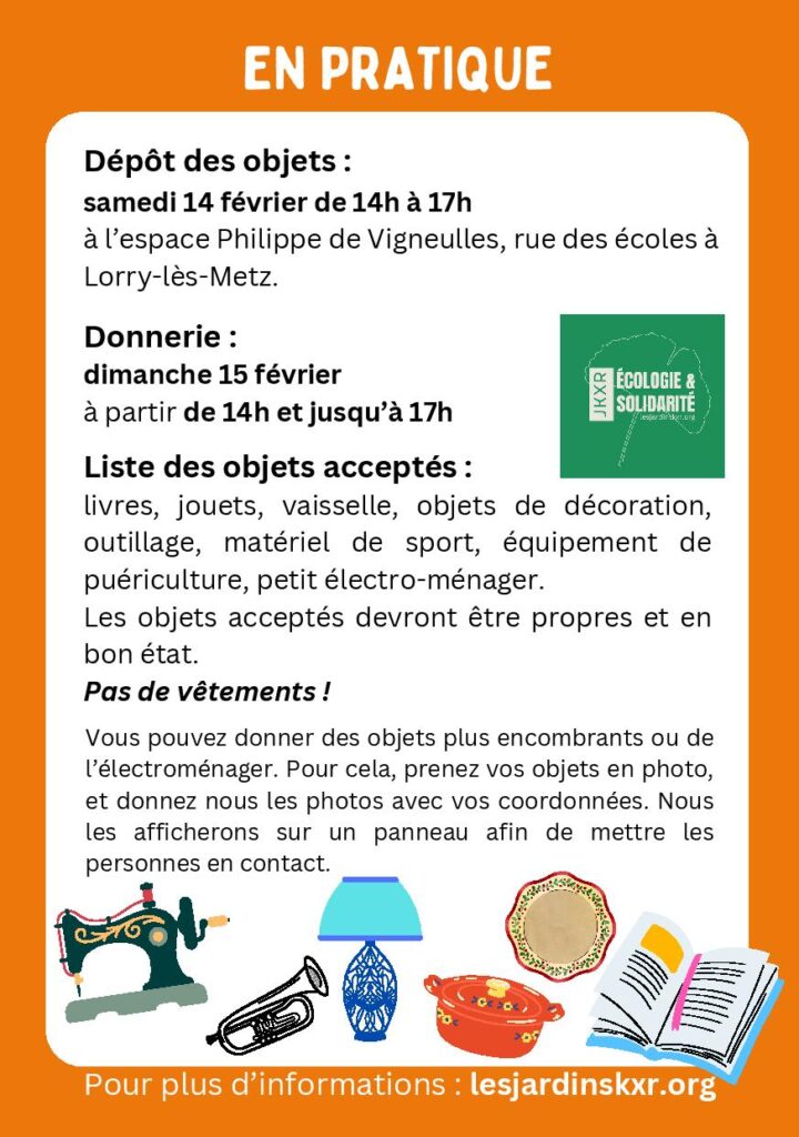 Dépôt des objets : samedi 14 février de 14h à 17h